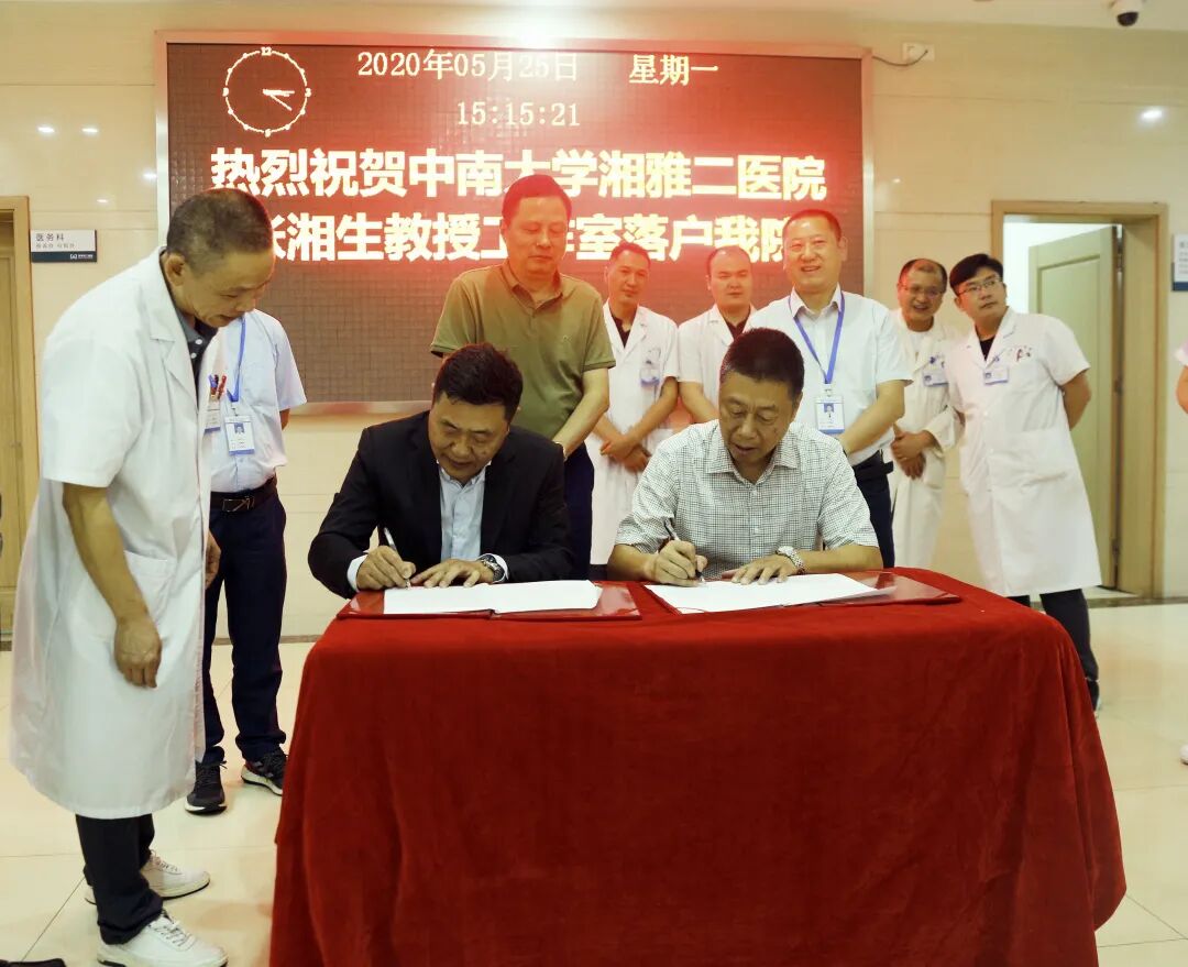 5月26日,株洲市二醫(yī)院與湘雅名醫(yī)張湘生教授工作室的掛牌儀式在二醫(yī)院隆重舉行。院長周恕代表二醫(yī)院與張湘生教授現(xiàn)場簽約,黨委書記湯世晶、院領(lǐng)導(dǎo)及醫(yī)院職工代表等參加儀式。