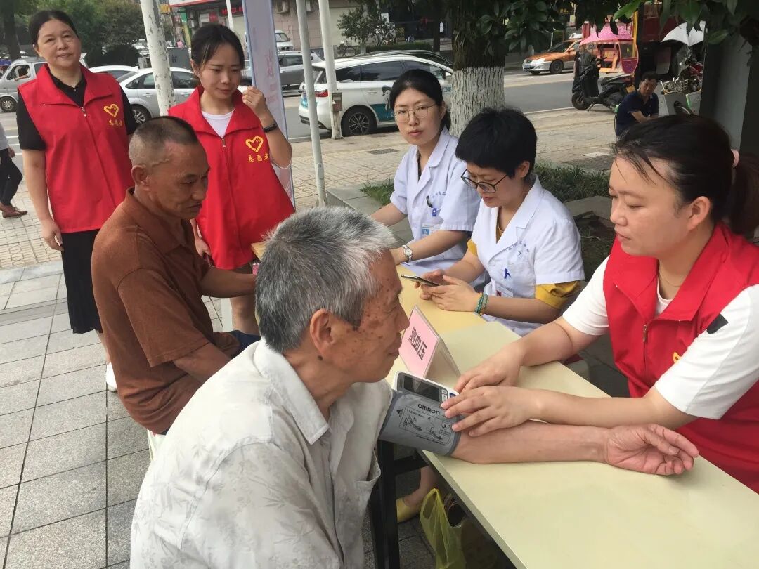 一大早,二醫(yī)院的內(nèi)外科專家和志愿者們來(lái)到了清石獻(xiàn)血屋前為附近居民提供健康咨詢并免費(fèi)測(cè)定血壓和血糖。街上人頭攢動(dòng),跳廣場(chǎng)舞、買菜的阿姨們紛紛加入到健康咨詢中,義診有條不紊地進(jìn)行著。