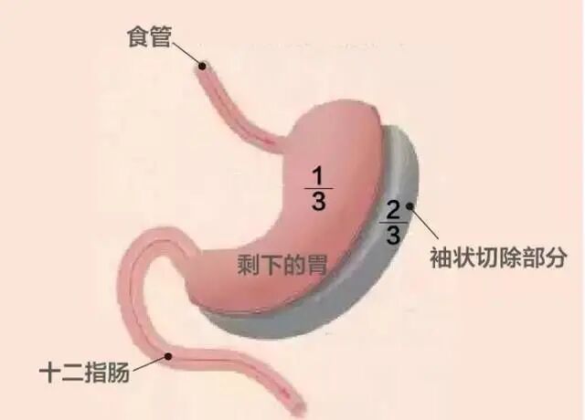 袖狀胃切除術(shù)比較適合年輕人,是利用腹腔鏡把胃的大彎垂直切割出來(lái)使胃部形成一個(gè)約150cc的小胃囊,會(huì)減少刺激食欲的荷爾蒙 Ghrelin 分泌量,因此食欲也會(huì)降低。對(duì)于極重度肥胖以及合并其它嚴(yán)重肥胖并發(fā)癥的高危患者而言,可選擇該手術(shù),能較快控制肥胖程度,盡早消除相關(guān)高危因素。