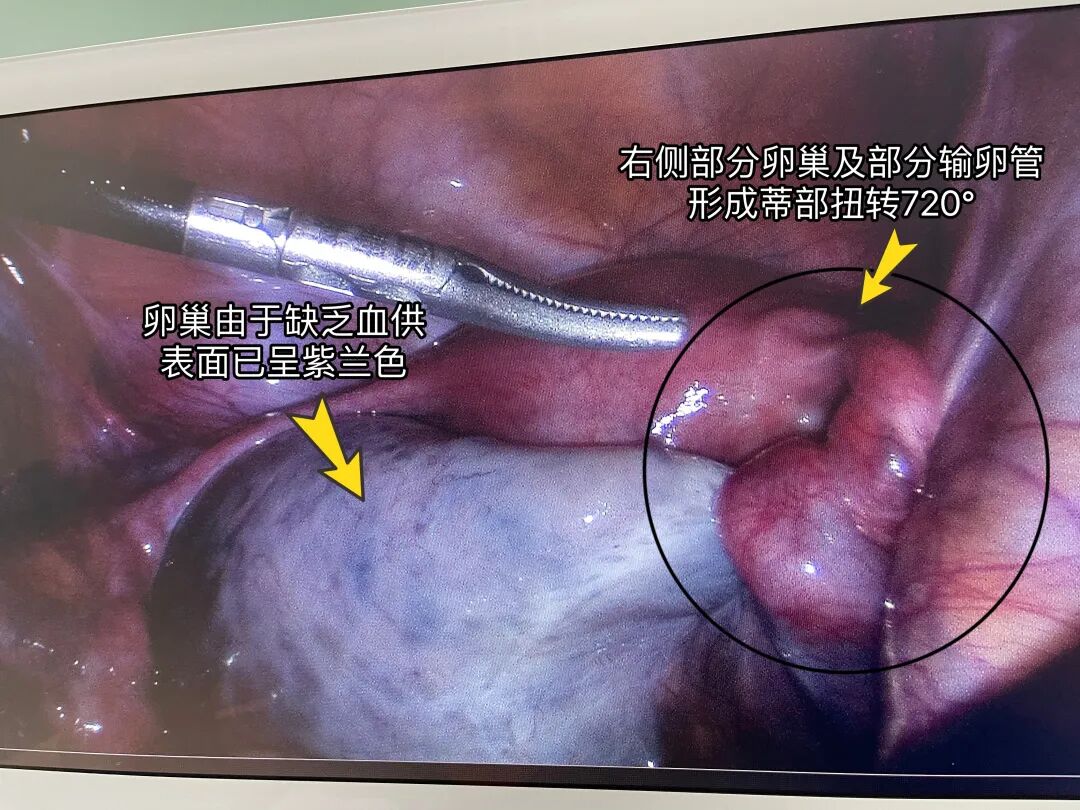 凌晨?jī)牲c(diǎn),夜深人靜,本該進(jìn)入夢(mèng)鄉(xiāng)的時(shí)間,晶晶卻在床上痛的直打滾,還伴有惡心嘔吐的癥狀,嚇得室友趕緊打車將晶晶送往了株洲市二醫(yī)院就診,經(jīng)過(guò)檢查發(fā)現(xiàn),晶晶右側(cè)部分卵巢及部分輸卵管形成蒂部扭轉(zhuǎn)720°,也就是整整兩圈!