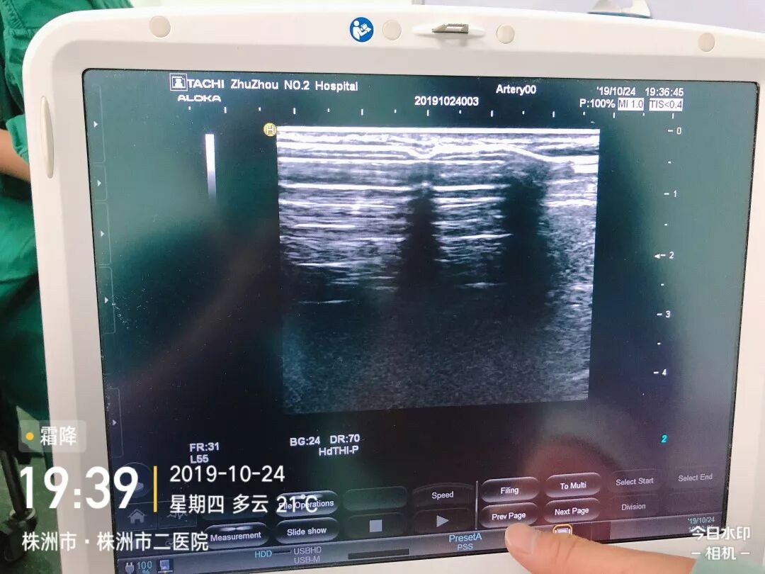 術(shù)后,彩超檢查,顯示黃嗲嗲原狹窄處已明顯擴(kuò)張達(dá)到要求,術(shù)后第二天即穿刺血透,流量滿意。