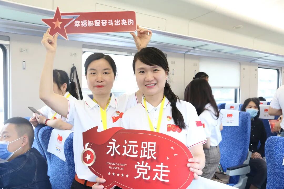 5月21日7點10分,隨著機(jī)車汽笛的一聲長鳴,滿載株洲市衛(wèi)健委系統(tǒng)430余名黨員的“湘贛邊紅色專列”緩緩駛出株洲火車站,向著紅色教育基地茶陵縣飛馳,開啟為期一天的黨史學(xué)習(xí)教育活動。
