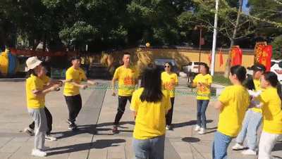 第一個團(tuán)建項目是“鼓動人心”。一面鼓,一個球,一群人,一條心。每位隊員雙手牽著一條繩子拉著鼓保持平衡,把球放在鼓面上,2分鐘內(nèi)完成顛球次數(shù)最多的戰(zhàn)隊將獲得勝利,排名最后的戰(zhàn)隊將接受懲罰,上臺表演節(jié)目。