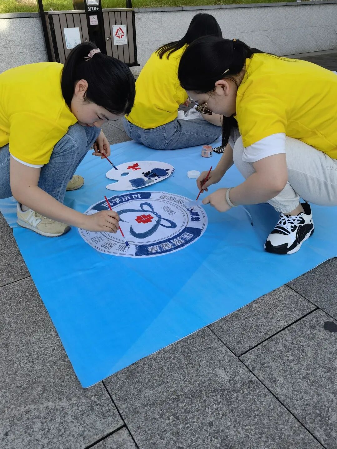 第二個團(tuán)建項目是“共繪藍(lán)圖”。我院主導(dǎo)設(shè)計了一張團(tuán)員青年慶祝建黨100周年的藍(lán)圖,藍(lán)圖被拆分成4個等分,每個小組根據(jù)效果圖完成相應(yīng)版塊的顏料調(diào)色和上色,最后將所有小組各自完成的藍(lán)圖板塊拼接在一起,形成了株洲市二醫(yī)院團(tuán)員青年慶祝建黨100周年共同藍(lán)圖。通過本次團(tuán)建活動,大家分工協(xié)作共同完成目標(biāo),充分發(fā)揮了團(tuán)結(jié)協(xié)作的精神,團(tuán)隊的凝聚力和戰(zhàn)斗力顯著提升。