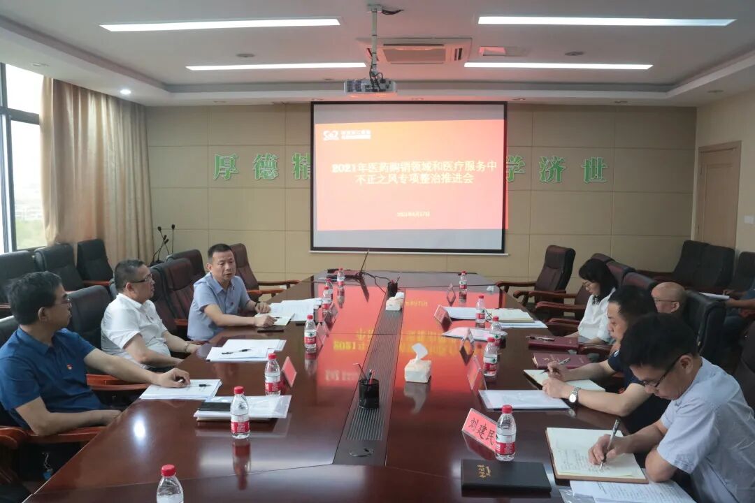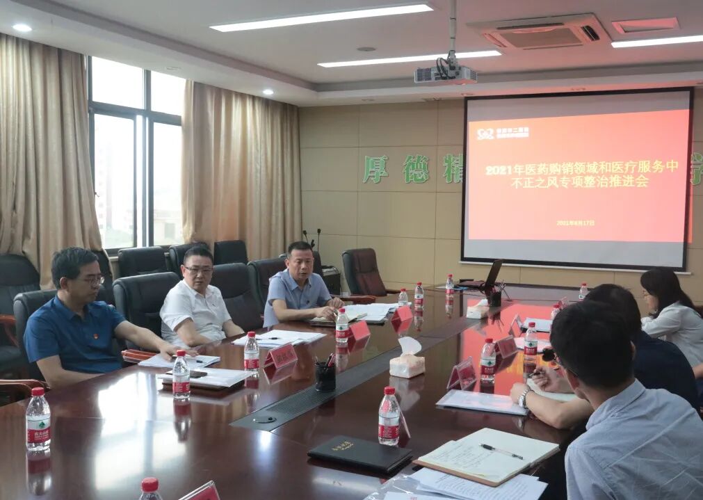 6月17日下午,株洲市二醫(yī)院自召開動員會后,第三次組織召開2021年醫(yī)藥購銷領(lǐng)域和醫(yī)療服務(wù)中不正之風(fēng)專項整治推進會在影像樓四樓會議室召開。市衛(wèi)健委黨委委員、副主任鄧躍東,市二醫(yī)院黨委書記劉建軍,院長鄒祖倡及醫(yī)院全體領(lǐng)導(dǎo)班子成員出席會議。