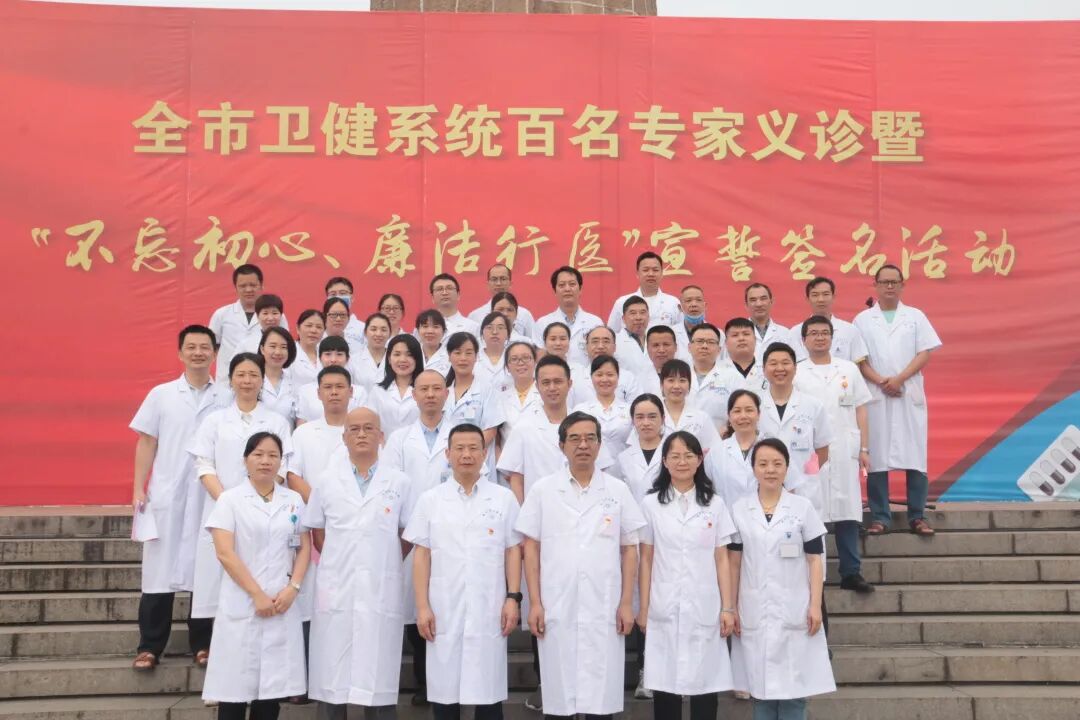 ▲株洲市二醫(yī)院黨委書記劉建軍,黨委副書記、院長鄒祖倡帶領(lǐng)醫(yī)院46名醫(yī)務(wù)人員齊聚株洲市炎帝廣場,宣誓不忘醫(yī)者初心、永葆廉潔行醫(yī)本色,自覺抵制行業(yè)不正之風(fēng)