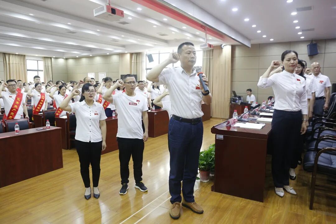 ▲株洲市二醫(yī)院黨委書記劉建軍七一前夕帶領(lǐng)全體黨員重溫入黨誓詞