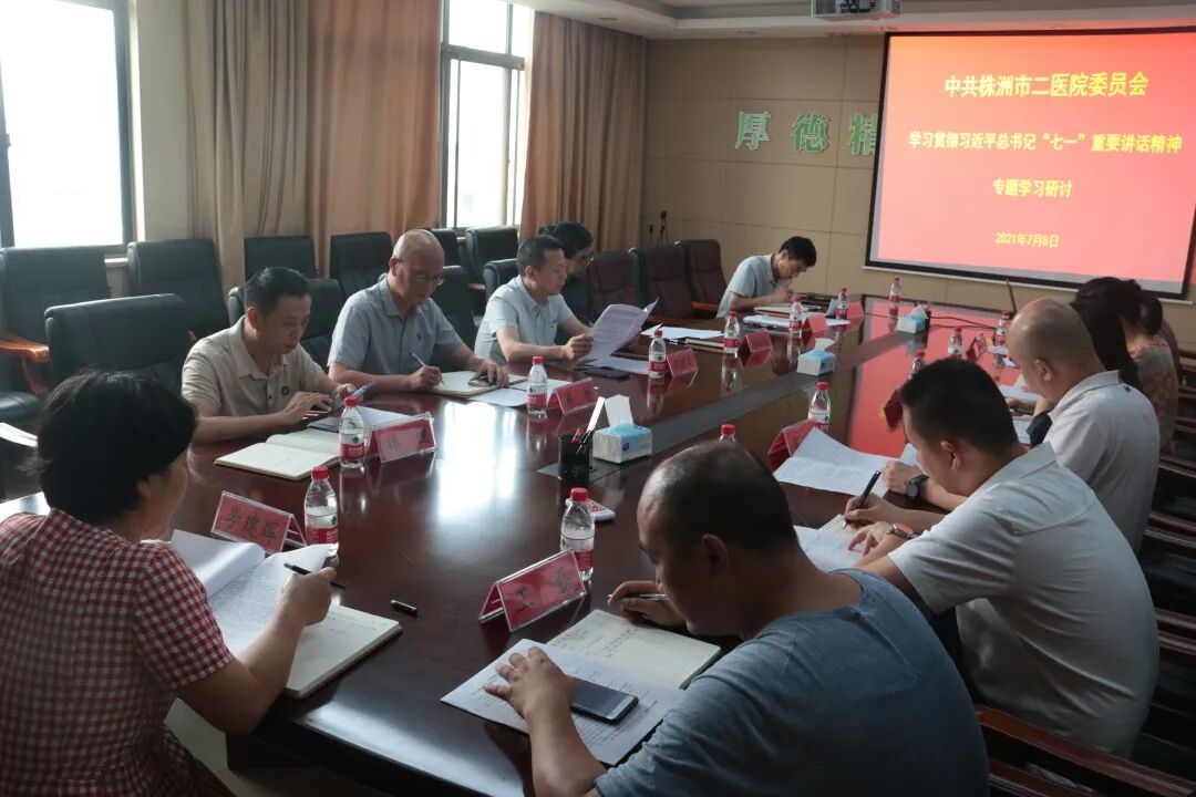 2021年7月8日下午,株洲市二醫(yī)院黨委召開理論學(xué)習(xí)中心組專題學(xué)習(xí)研討(擴(kuò)大)會(huì)。株洲市二醫(yī)院黨委書記劉建軍主持會(huì)議并傳達(dá)了習(xí)近平總書記在慶祝中國(guó)共產(chǎn)黨成立100周年上的重要講話精神。他強(qiáng)調(diào)全院廣大黨員干部要把要把深入學(xué)習(xí)習(xí)近平總書記在慶祝中國(guó)共產(chǎn)黨成立100周年大會(huì)上的重要講話精神,作為當(dāng)前和今后一個(gè)時(shí)期的重要政治任務(wù),統(tǒng)一思想行動(dòng),凝聚智慧力量,進(jìn)一步推動(dòng)黨史學(xué)習(xí)教育向縱深發(fā)展,和衷共濟(jì)、齊心協(xié)力開創(chuàng)建設(shè)醫(yī)院高質(zhì)量發(fā)展的新局面。