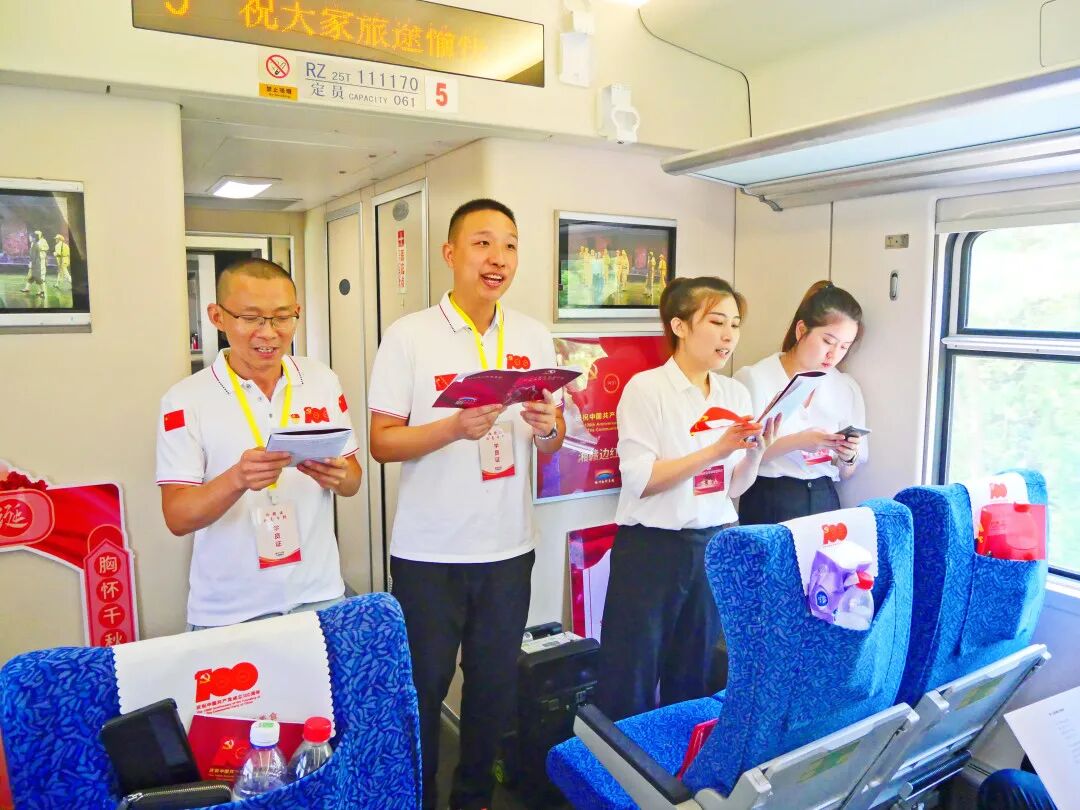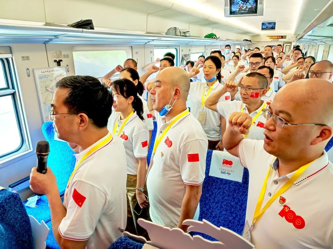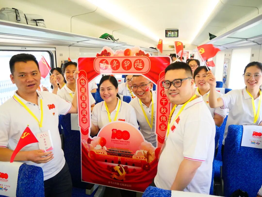 上午十點(diǎn)四十,黨員們從株洲老火車站出發(fā),乘坐紅色專列前往茶陵,踏上紅色研學(xué)的征程。在紅色專列上,各位黨員積極開展“七個(gè)一活動(dòng)”,體驗(yàn)移動(dòng)精品黨課,感受革命先烈的英雄事跡,體驗(yàn)紅色文化的初心之旅。