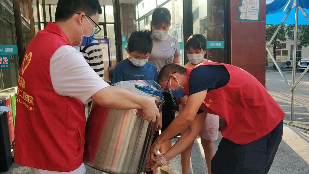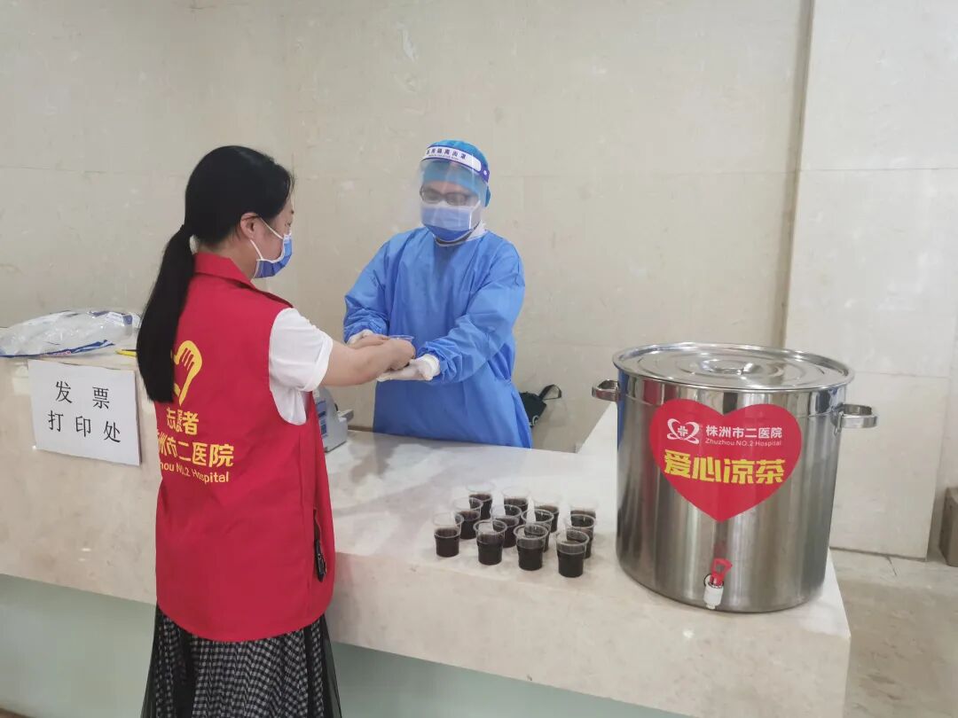 接到醫(yī)院黨委關(guān)于志愿者的報名通知后,全科室同志踴躍報名??紤]到目前最高溫度近40℃,藥劑科人員思考:“作為一群藥學(xué)工作者,我們能為社會做點什么?”他們第一時間想到的是,可以熬一些抗疫配方預(yù)防涼茶,為一線抗疫人員送“清涼”。8月2日上午,中藥房吳琛藥師負(fù)責(zé)熬藥,藥劑科主任劉愛民、副主任劉隆臻、工會小組長張美瓊、班組長孟娟和羅涵煦負(fù)責(zé)送涼茶,主管院感的副院長劉建民將一杯杯涼茶遞給抗疫一線人員,清涼了酷暑,溫暖了人心。