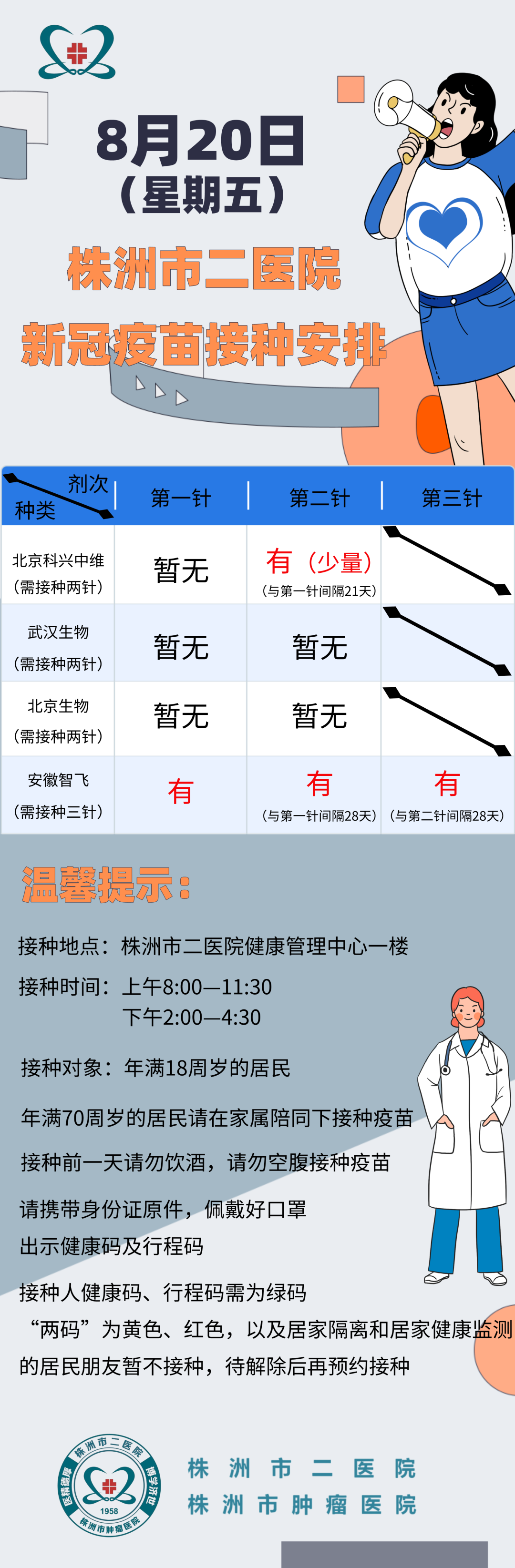 接種地點(diǎn):株洲市二醫(yī)院健康管理中心一樓
