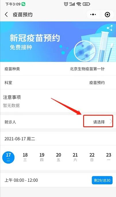 ■ 選擇好就診人、指定日期時(shí)間段 點(diǎn)擊號(hào)源數(shù)量 預(yù)約疫苗