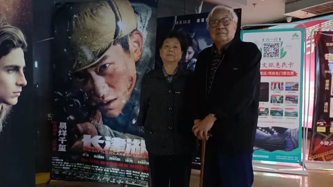 ▲陳明哲與家人一同在電影院觀看《長津湖》