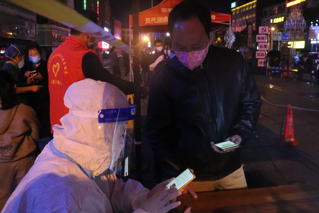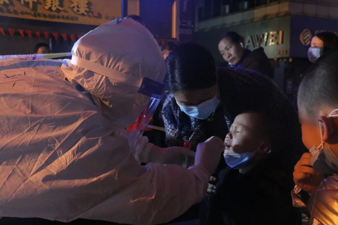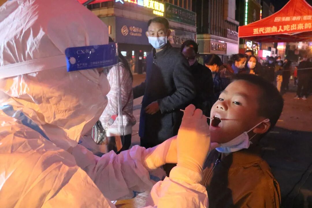 如此簡(jiǎn)單的兩句話,她們不知重復(fù)了多少遍,晚上氣溫驟降,秋風(fēng)瑟瑟,她們?nèi)淌苤?,一遍又一遍的重?fù)同一句話、同一個(gè)動(dòng)作,“我們本來(lái)就是過(guò)來(lái)支援的,這些都不算什么,沒(méi)有生而英勇,只有選擇無(wú)畏,我們就希望這里的疫情能早點(diǎn)結(jié)束!”市二醫(yī)院核酸采集突擊隊(duì)隊(duì)長(zhǎng)雷松說(shuō)。