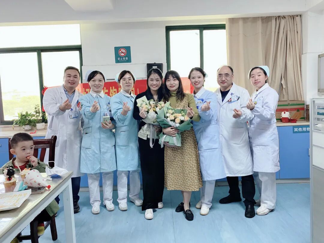 ▲出征前,神經(jīng)內(nèi)科醫(yī)護(hù)人員為廖小慧送花慶生