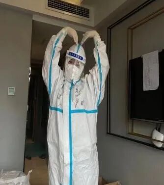 10月26日原本是在酒店待命的一天,早上看見微信群里面的消息因為有過發(fā)熱門診抗疫經(jīng)歷,我也相信自己可以出一份力,在征求了護士長的意見之后,我和劉老師報名轉(zhuǎn)戰(zhàn)隔離酒店,我和雷松老師一組,到達隔離酒店后,已經(jīng)有陸陸續(xù)續(xù)隔離人員入住進來了,但是酒店沒有三區(qū)兩通道,意味著我們必須立馬建好三區(qū)兩通道,雷松老師立即和住建局的領導商量布局,午飯時間隔離點的午餐已送達,我和雷松老師分工合作,我立即穿好防護用品,給隔離點的隔離人員送餐,量體溫,詢問健康狀況。一遍流程下來氣喘吁吁,汗如雨下。