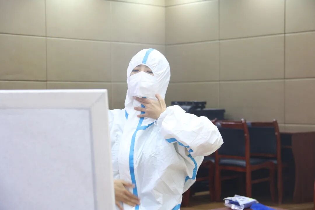 比賽現(xiàn)場(chǎng)氣氛熱烈而緊張,參賽選手們個(gè)個(gè)精神飽滿、嚴(yán)肅認(rèn)真、技術(shù)嫻熟、動(dòng)作規(guī)范。從開(kāi)始報(bào)告“可以開(kāi)始”到“操作完畢”結(jié)束,大家嚴(yán)格按照穿脫防護(hù)服的考核標(biāo)準(zhǔn)依次完成操作環(huán)節(jié)。每一步的穿脫流程,選手們都會(huì)認(rèn)真介紹步驟內(nèi)容并同步展示動(dòng)作要領(lǐng),強(qiáng)調(diào)理論與實(shí)踐相結(jié)合,將穿脫防護(hù)服的每一處細(xì)節(jié)都演練到位。