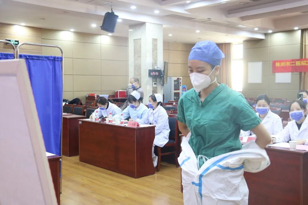 為慶祝建黨100周年,弘揚(yáng)抗疫精神,傳承勞動(dòng)精神,進(jìn)一步落實(shí)好常態(tài)化疫情防控措施,提高醫(yī)務(wù)人員院感防控意識(shí)和技能,切實(shí)保障醫(yī)療質(zhì)量和醫(yī)療安全,為患者提供更加安全的醫(yī)療環(huán)境,11月9日,株洲市二醫(yī)院醫(yī)務(wù)科牽頭,院感科、群團(tuán)工作科等多部門聯(lián)合在醫(yī)院影像樓5樓會(huì)議室開(kāi)展株洲市二醫(yī)院2021年“崗位練兵、技術(shù)比武”醫(yī)生技能競(jìng)賽,據(jù)悉,此次醫(yī)生技能競(jìng)賽以正確穿脫防護(hù)服為比賽內(nèi)容,全院24個(gè)臨床科室45位醫(yī)生參加比賽。醫(yī)院黨委委員、副院長(zhǎng)易健出席活動(dòng),副院長(zhǎng)劉建民、工會(huì)主席袁敏出席活動(dòng)并致辭。