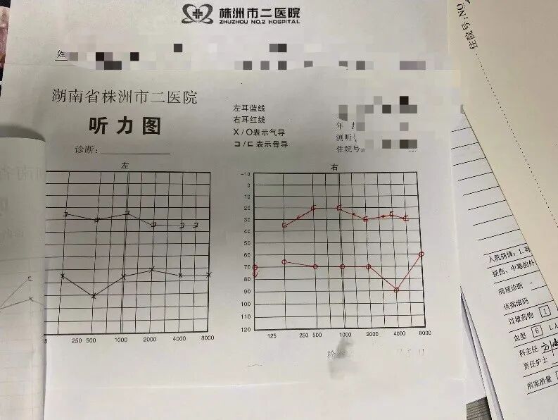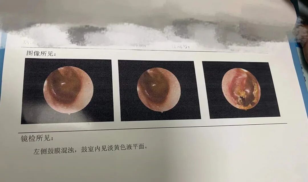 本來沒把這當(dāng)一回事的睿睿媽媽才真的害怕了,不再找借口了,馬上帶著睿睿到株洲市二醫(yī)院耳鼻喉科看醫(yī)生,通過一系列的專業(yè)檢查,醫(yī)生確認(rèn),睿睿只是“分泌性中耳炎”。彩超提示耳內(nèi)鼓膜渾濁,鼓室內(nèi)見黃色液平面,聽力測試表提示雙耳聽力減弱。