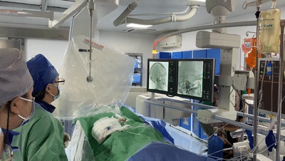 由神經(jīng)內(nèi)科專家張乃文主任帶領(lǐng)的醫(yī)生團(tuán)隊(duì)根據(jù)患者情況,對(duì)手術(shù)風(fēng)險(xiǎn)、并發(fā)癥及預(yù)后等進(jìn)行了全面評(píng)估,并為其制定了科學(xué)、周密的手術(shù)方案。目前動(dòng)脈瘤治療大多首選血管內(nèi)介入治療,通過(guò)血管用微導(dǎo)管向動(dòng)脈瘤內(nèi)填入彈簧圈,封堵動(dòng)脈瘤及血管破口,以起到治療作用,具有創(chuàng)傷性小、痛苦小、恢復(fù)快等優(yōu)點(diǎn)。