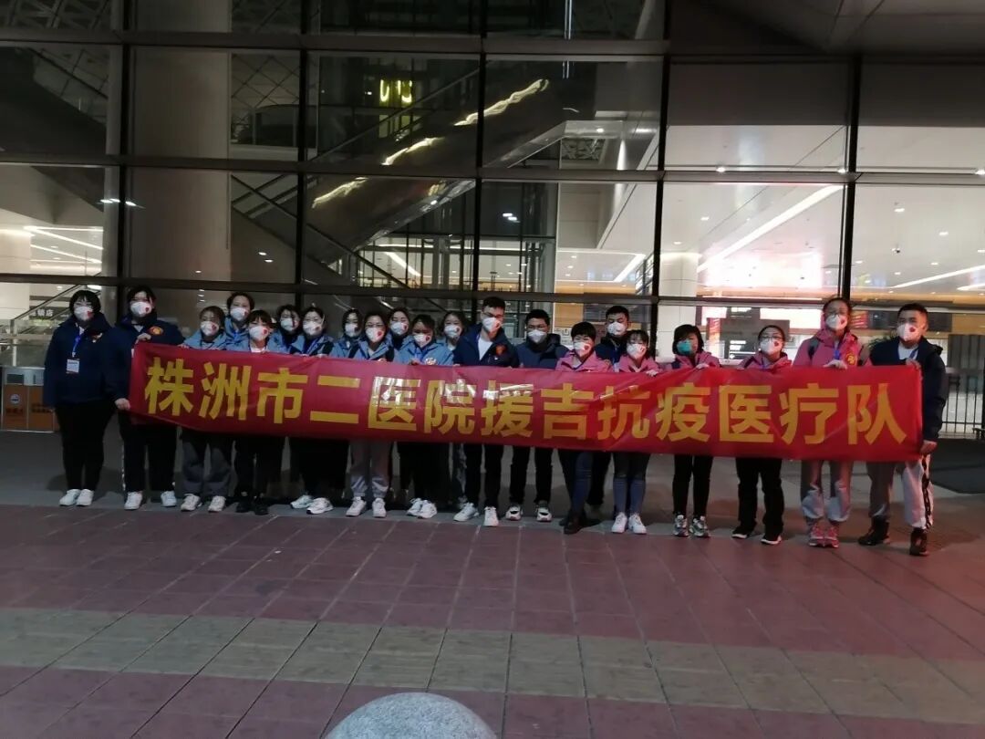 ▲株洲市二醫(yī)院第一批和第二批醫(yī)療隊(duì)隊(duì)員在長春機(jī)場合影