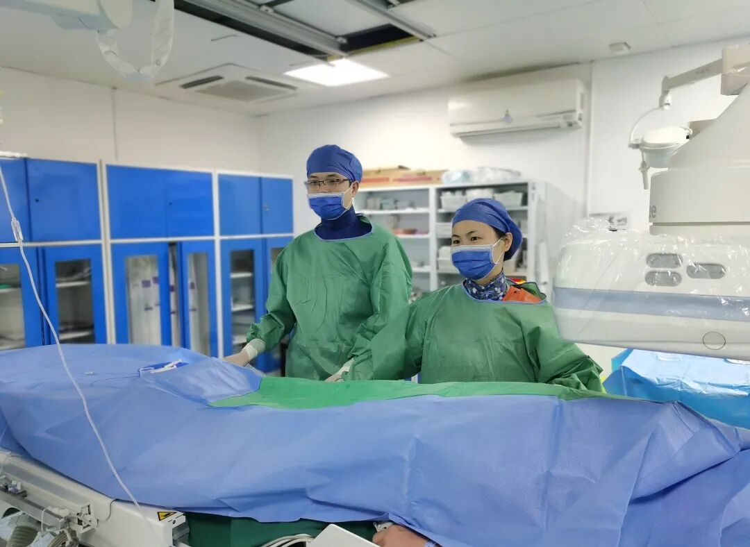 ▲劉定坤主任及李煒醫(yī)生為錢先生行“血管內(nèi)超聲+經(jīng)皮冠狀動(dòng)脈支架植入術(shù)”