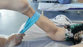運用外力牽伸短縮或攣縮組織并使其延長,防止組織發(fā)生不可逆性攣縮,調(diào)節(jié)肌張力,緩解疼痛,增加膝關(guān)節(jié)屈伸角度。