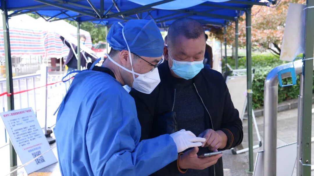 ▲公衛(wèi)科科長(zhǎng)陳雅利作為志愿者在核酸采樣點(diǎn)指導(dǎo)