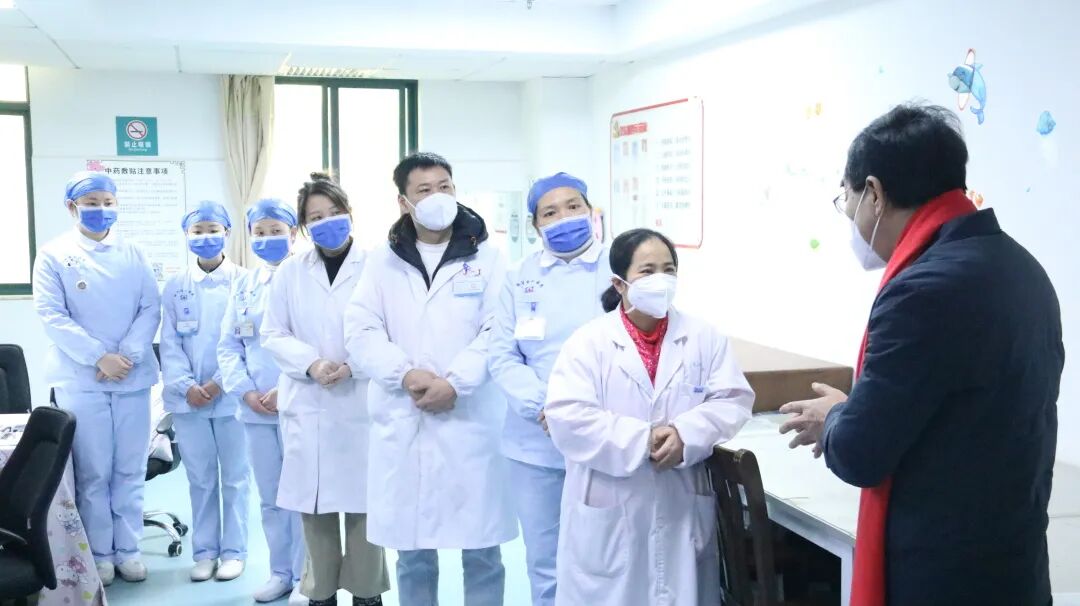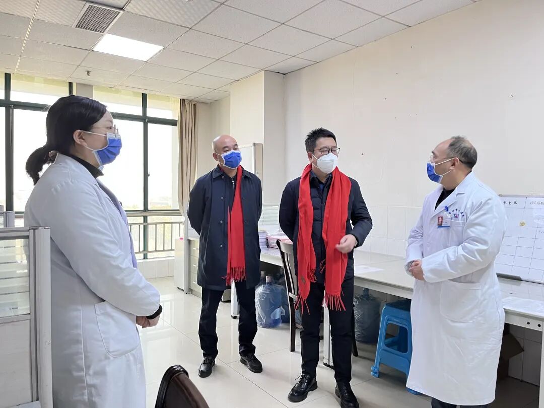 會后,黨委書記鄒祖倡、院長李文燦帶領(lǐng)領(lǐng)導班子成員及相關(guān)職能科室負責人分別前往各臨床、醫(yī)技等科室慰問工作人員,檢查工作狀態(tài),為職工送上新春祝福。