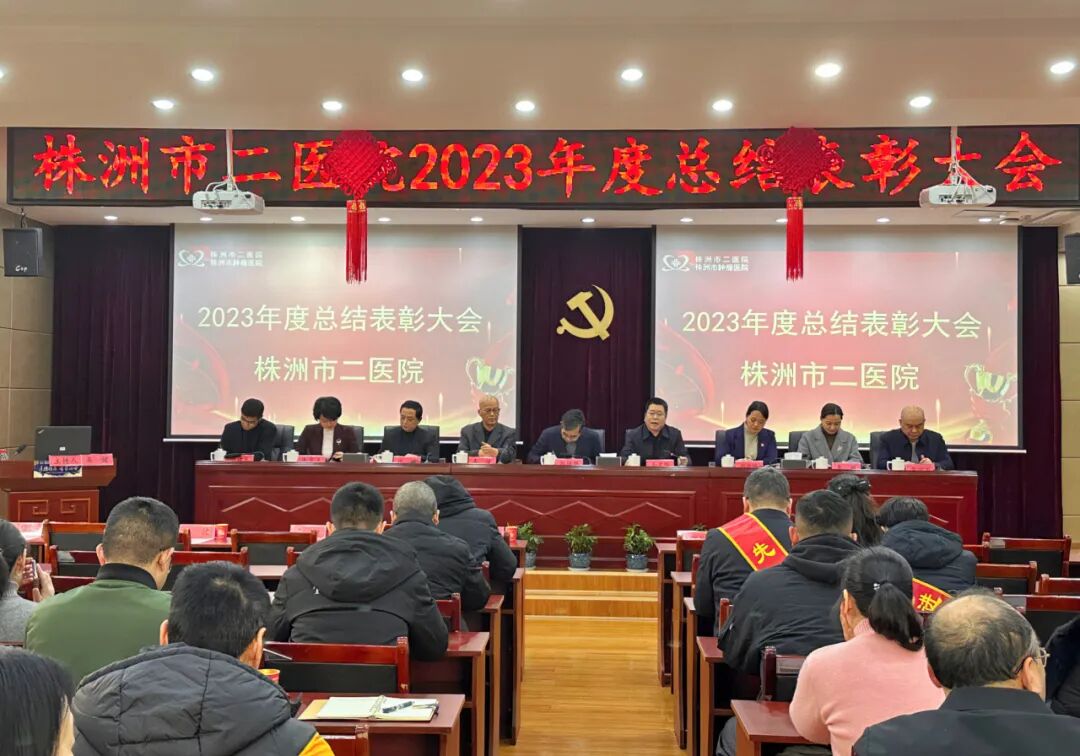 為全面總結(jié)2023年醫(yī)院各項工作完成情況,擘畫醫(yī)院2024年發(fā)展藍圖,2月29日,株洲市二醫(yī)院召開2023年度總結(jié)表彰大會,醫(yī)院全體領(lǐng)導(dǎo)班子成員出席會議,全體中層干部及受表彰者代表參加會議,會議由黨委委員、副院長易健主持。