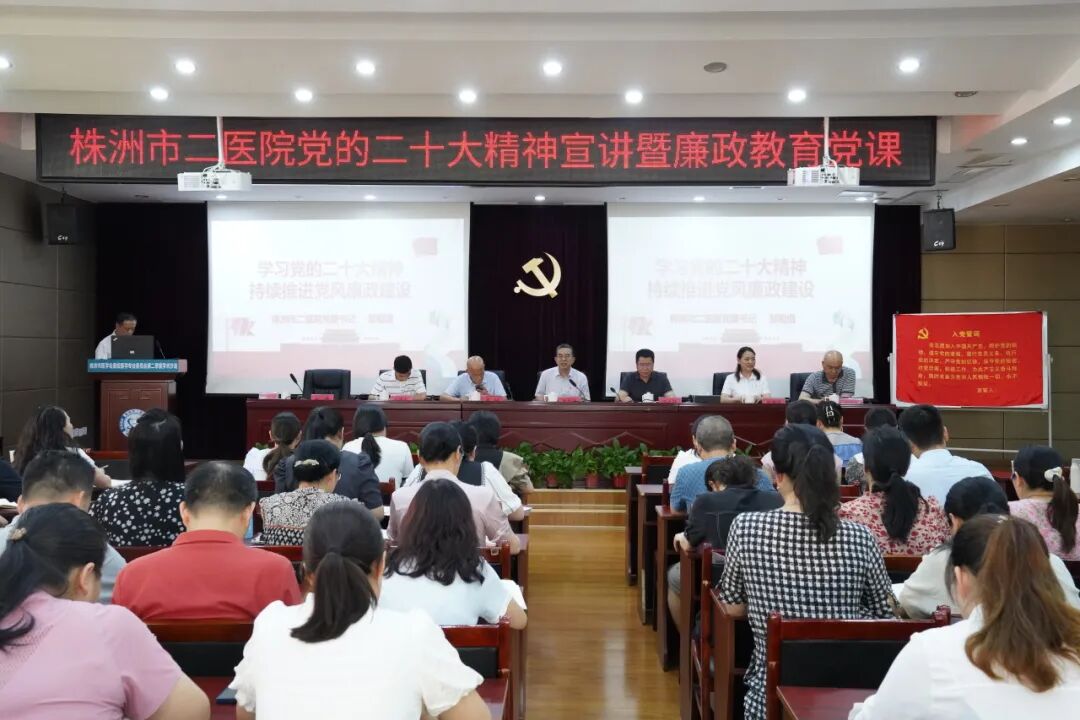 為深入學(xué)習(xí)貫徹黨的二十大精神,持續(xù)推進黨風(fēng)廉政建設(shè),落實全面從嚴治黨要求,加強全院黨員干部黨風(fēng)廉政教育,提升廉潔自律意識,6月30日,株洲市二醫(yī)院開展黨的二十大精神暨廉政教育黨課,黨委書記鄒祖倡出席會議并宣講授課,全院黨員領(lǐng)導(dǎo)干部參加會議,會議由黨委委員、副院長林健主持。