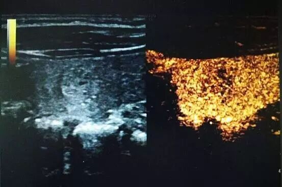 超聲造影是近年發(fā)展起來的一項新技術,它是基于不同腫瘤具有特殊的血管分布及血流灌注原理,根據(jù)造影劑到達病灶情況,進入及退出病灶模式和灌注量的不同,清晰顯示腫瘤的微循環(huán)血流灌注特性,為鑒別甲狀腺結節(jié)的良惡性提供了更多信息,使得甲狀腺癌甚至是幾毫米大小的微小甲狀腺癌也能被鑒別出來。