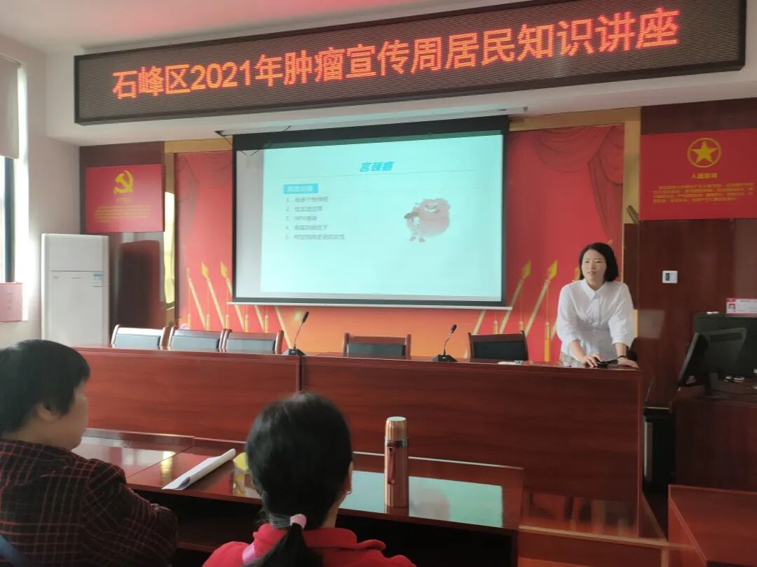 為了向群眾傳播科學(xué)理念,普及抗癌知識,在第27屆全國腫瘤防治宣傳周期間,株洲市二醫(yī)院(株洲市腫瘤醫(yī)院)腫瘤支部積極開展“我為群眾辦實(shí)事”主題實(shí)踐活動,醫(yī)院副院長劉建民及腫瘤支部醫(yī)生鄧仁芳分別來到響石嶺社區(qū)及清水塘社區(qū),給剛剛完成健康體檢的居民普及科學(xué)防癌知識,活動現(xiàn)場座無虛。我院以實(shí)際行動向附近的居民完成宣教和健康理念滲透。