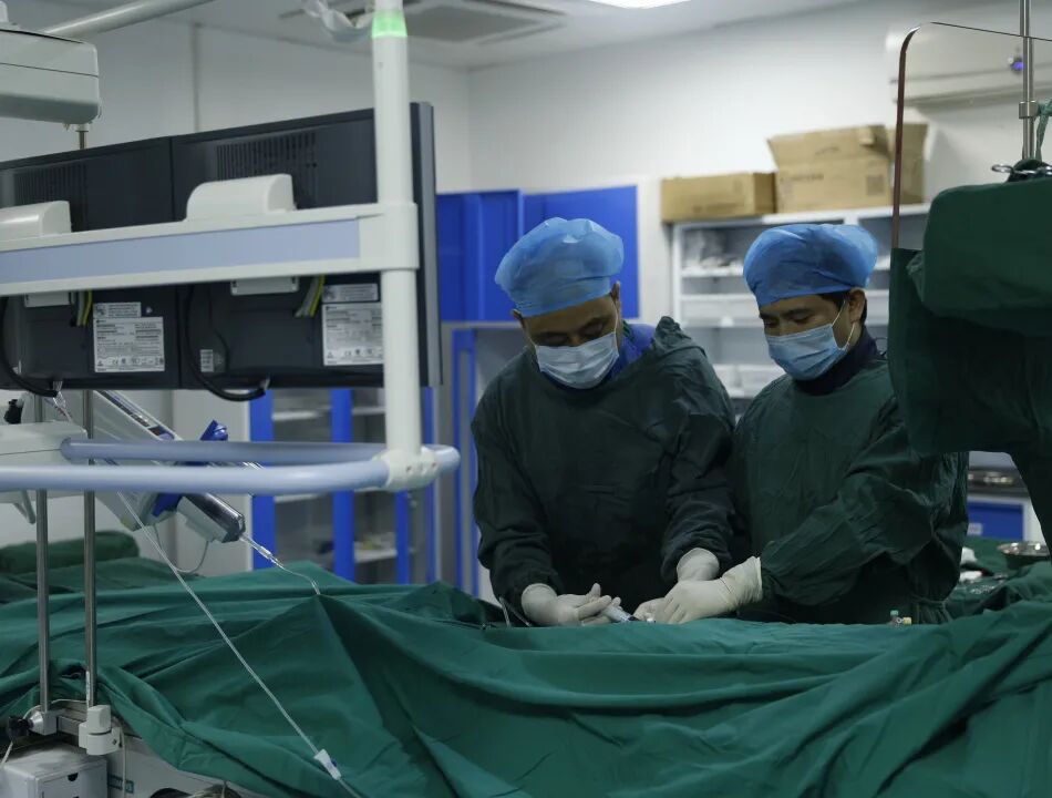 ▲株洲市二醫(yī)院、株洲市腫瘤醫(yī)院腫瘤微創(chuàng)介入科(腫瘤二科)團(tuán)隊(duì)開展腫瘤微創(chuàng)介入手術(shù)